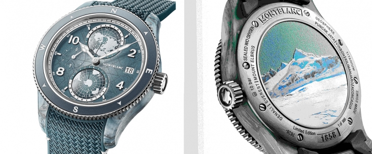 為了展示文森峰的壯麗美景,MONTBLANC還在錶殼底蓋上鐫刻了這座雄偉山峰,採用了一種能呈現逼真立體效果的技術,使圖案看起來幾乎像照片一樣。製作過程是首先將鈦金屬打造成特殊結構,然後以雷射技術鐫刻圖案,形成浮雕效果,再以雷射技術完成表面處理(霧面與拋光)。在最後的著色階段,借助雷射產生的氧化作用形成色彩,而色彩效果取決於氧化程度;MONTBLANC是能夠在如此大面積的表面上運用此技術的先進品牌之一。