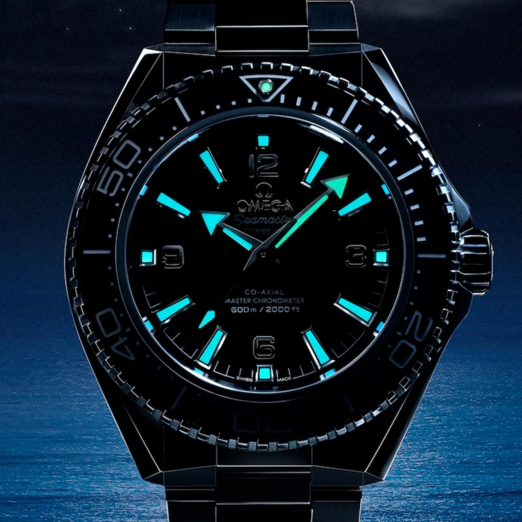 Ocean標誌性的箭形指針和矚目的立體時標,全部覆以Super-LumiNova超螢光塗層,即使在暗處或深水環境亦清晰易讀。